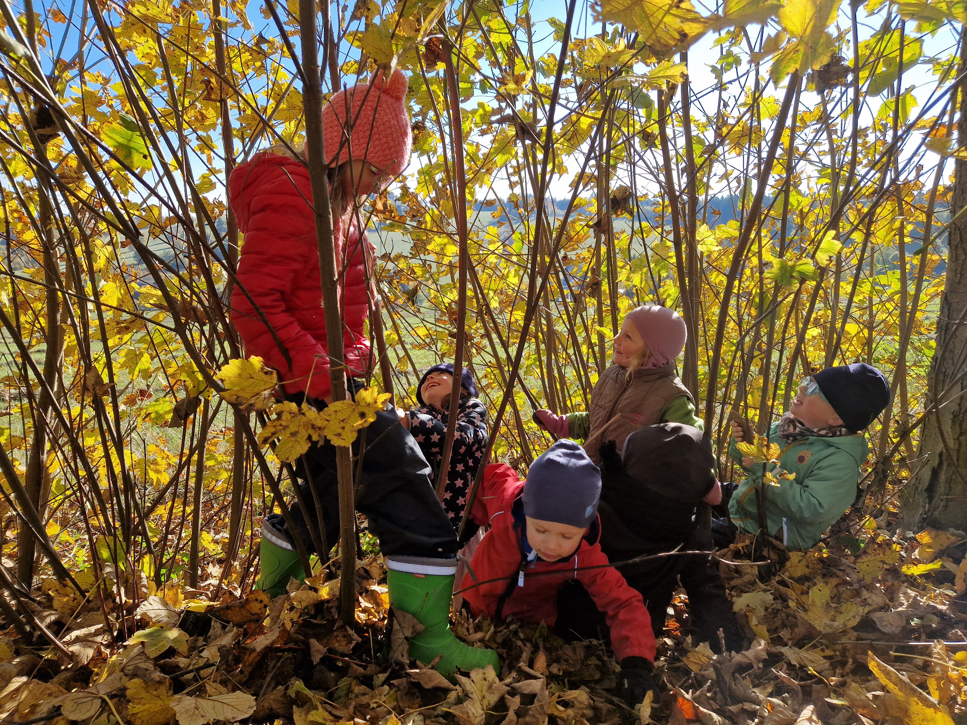 Tvoření z přírodninInstrukce: Hra "Co mi roste na hlavě?" – tvorba "parohů" z klacíků a listí, které si děti zkusí na hlavu připevnit.